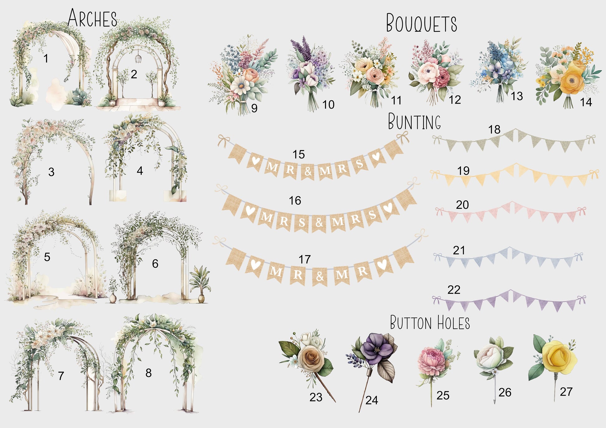 4) Choose your numbers for bunting, bouquets, arches and button holes.