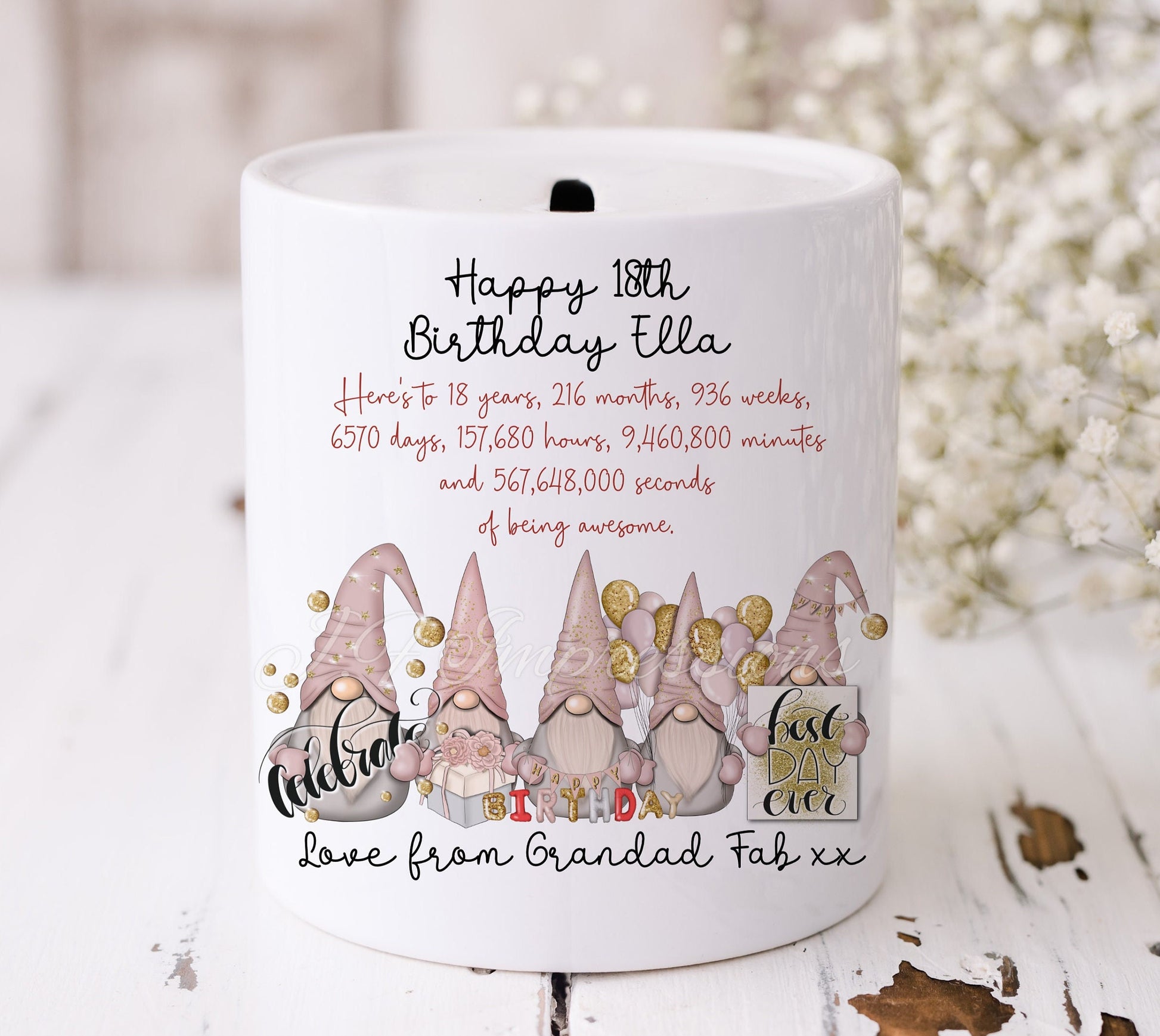 Personalised 18th Birthday Girl Ceramic Money Box